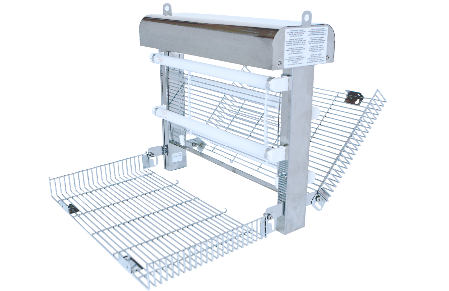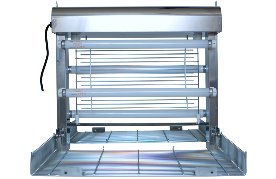 Der Brandenburg Genus® Liberator Killer – Insektenvernichter ist eine zuverlässige Hochspannungs-Fliegenfalle und wurde speziell für anspruchsvolle Bereiche entwickelt. Dieser leistungsstarke Insektenkiller aus Edelstahl wird mit 4 bruchsicheren 15 Watt Lampen geliefert (konform HACCP-Klassifizierung), verfügt über ein Hochspannungsgitter und eine große Auffangschale – Garantie für hohe Fangquoten! Natürlich verfügt auch dieser Brandenburg über die Translucent Technology™, die für eine größere UVA-Abdeckung sorgt, für Räume bis 210 m². Das Design des Genus® Liberator Killer ist modern und aufgrund seiner kompakten und schlanken Bauweise passt er überall. Sein Gehäuse ist aus Edelstahl gefertigt und sehr robust und stabil. Die Betriebskosten sind niedrig. Auch die Wartung des Brandenburg Genus® Liberator Killer ist ein Kinderspiel: Die Gitter können an beiden Seiten ausgeklappt werden und sie benötigen kein Werkzeug. Montagemöglichkeiten sind an der Wand oder am Plafond. Diese Profi-Insektenlampe ist auch mit der IP45-zertifizierten Jet-Proof-Technologie für Nass- oder Feuchtbereiche erhältlich. (Brandenburg Genus® Liberator Killer IP45). Anwendungsbereiche: Lagerhaus, Produktionsbereich, Müllraum, Abstellraum, Verpackungsbereichen, öffentlichen Bereichen, Hotel, Stadion, Kino. Merkmale: Für Räume bis 210 m² High-Voltage-Insektenvernichter mit großem Fangbereich Patentierte Translucent Technology™ Einfache Bedienung Schnelle Wartung ohne Werkzeug (Gitter an beiden Seiten) Niedrige Betriebskosten 4 x 15W T8 elektrische Lampen (bruchsicher HACCP-konform) Elektronische Ballasttechnologie, keine Starter Verfügbar mit Hochspannungsnetz Brandenburg Universal-Klebeplatte Konstruktion: Edelstahl IEC-Verbindung; Netzkabel 2 Meter Montage an der Wand oder Decke (Plafond) CE-Geprüft Entworfen und gebaut Qualität: BS und ISO 9001:2008 Zertifiziert nach europäischen Sicherheitsstandards EN60335-1 und EN60335-2-59 Erhältlich mit IP45-Klassifiezierung für Nass- und Feuchtbereiche